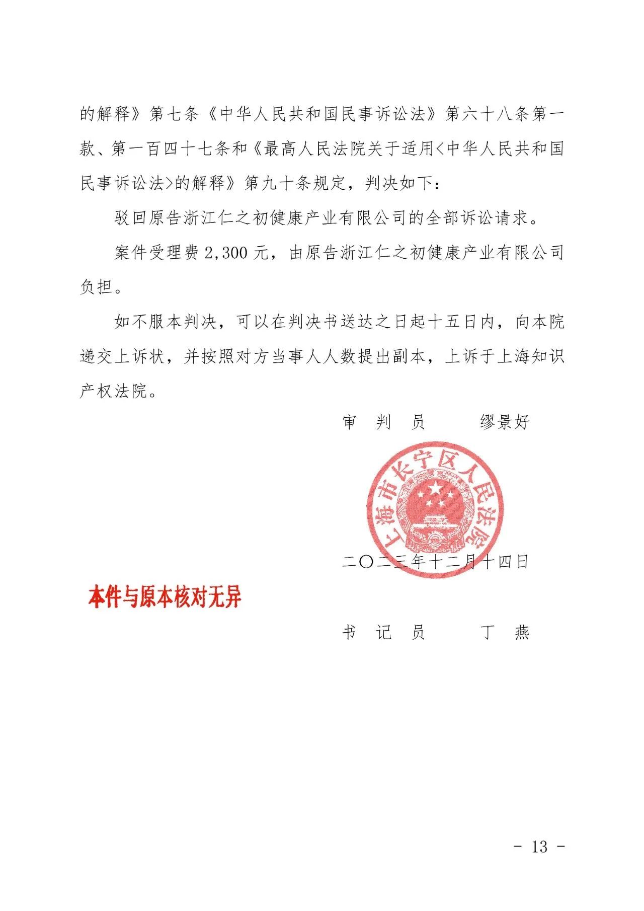 泸州辉知胜诉佳讯 | “仁之初健康”著作权及不正当竞争纠纷案,法院:驳回全部诉讼请求!